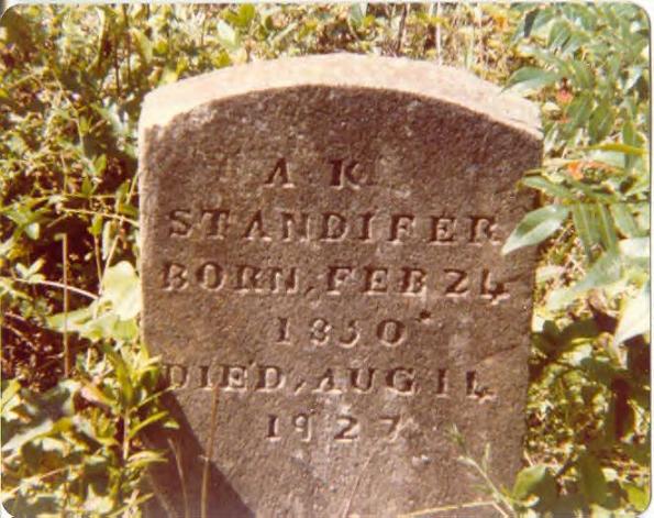 Standifer, Alfred King, b. Feb. 24, 1850, d. Aug. 14, 1927,married Julia Elliott Standifer on 1/28/1869, New dm/w Julia Elliott Standifer. Standifer, Julia Elliott, b. Oct. 15, 1847, d. Oct. 29, 1893, married Alfred King Standifer on 1/28/1869, New dm/w Alfred King Standifer.