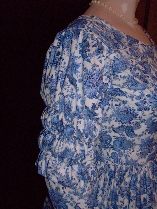 Fabric used on this blue printed gown was $10.00 a yard. |