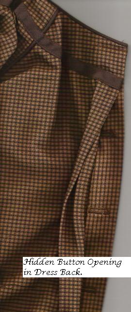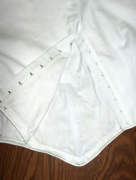 Hook & Eye Sets Hand-stitched into a dress opening. This is done only on request for original, historical reproductuons. Hand stitched hook and eye sets take approx. 6 hrs to complete an entire opening in the bodice of a dress. |